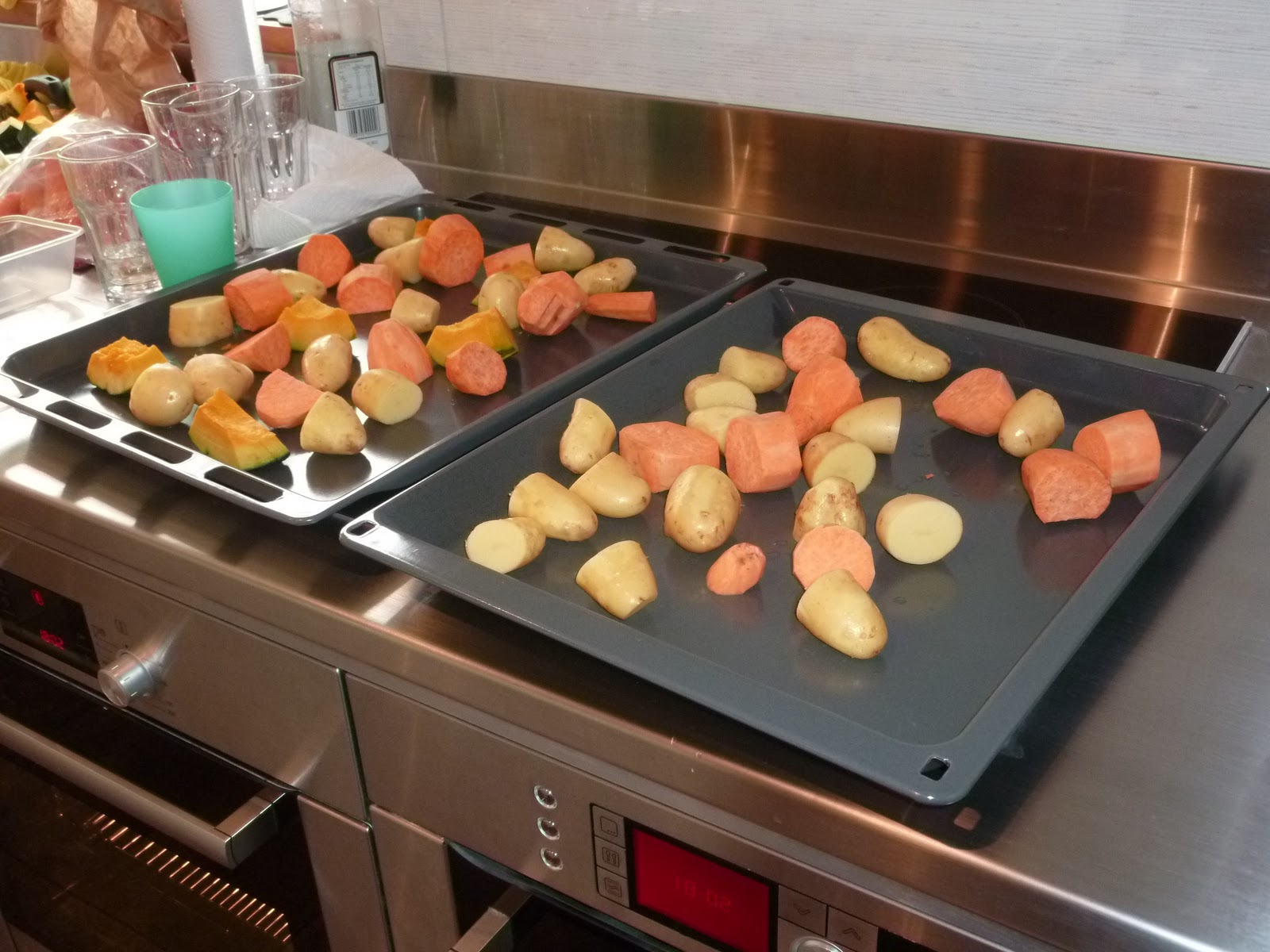 Valérie et moi à l'épluchage de légumes typiquement néo-zélandais : les kumaras (sorte de patates douces oranges que l'on prépare au four avec des pommes de terres et des citrouilles)
